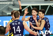 앞서 천안에서벌어진 경기에서는 현대캐피탈이 OK저축은행을 세트스코어 3대1로이겼다.